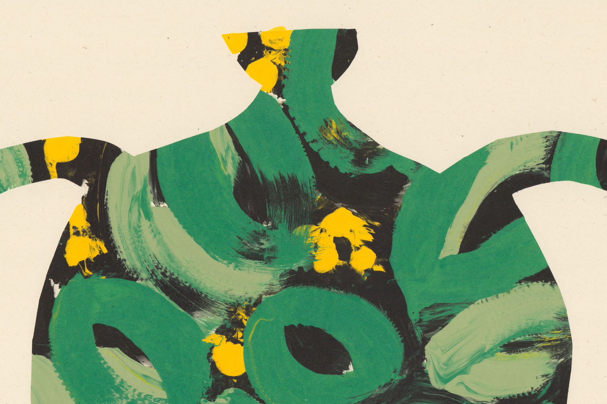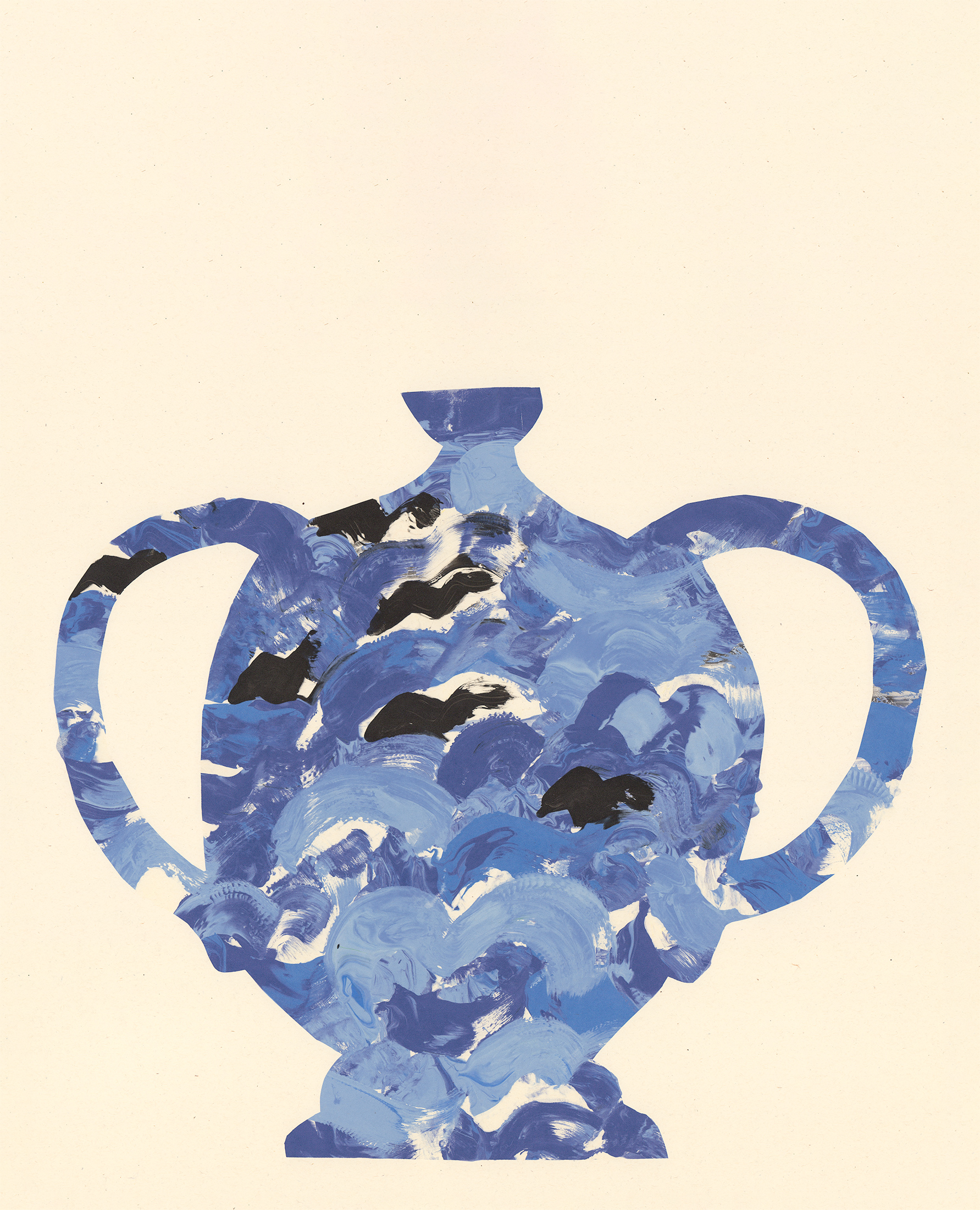 This is a monoprint, printed into a screen that I exposed a cut out of a vase onto. There are a selection of different colour varieties.