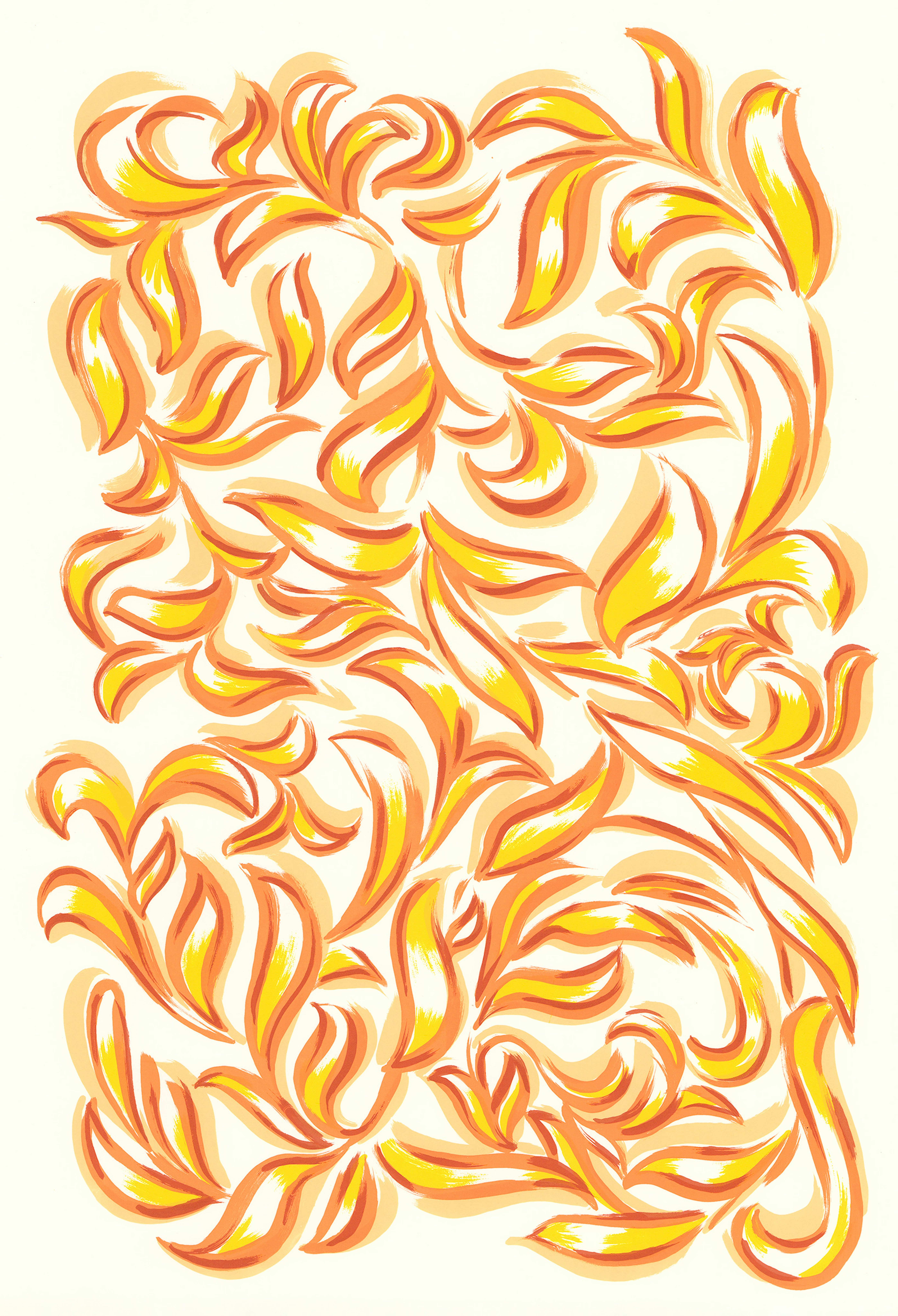 This screenprint was made by painting by hand each layer onto sheets of mark resist film (like tracing paper). All with a flat square brush – then exposing onto the screen.